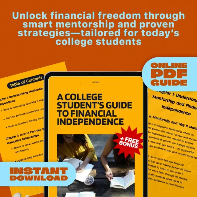 Whether you’re just starting college or nearing graduation, financial freedom can feel like a distant dream. A College Student’s Guide to Financial Independence turns that dream into a clear, step-by-step reality. This powerful digital guide is more than just an eBook—it’s a strategic roadmap designed to help students like you build real-world financial habits and success through the power of mentorship. If you’ve ever wondered how some students seem to get ahead while others struggle, this guide reveals the key: mentorship for college students pursuing financial independence.