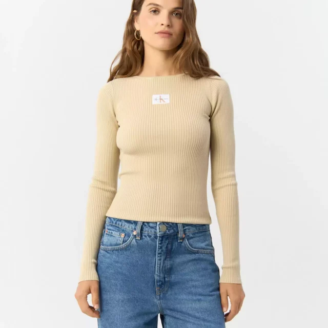 Why It’s Special: What sets this Calvin Klein Jeans knitwear apart is its combination of premium materials and classic design. The beige color is incredibly versatile, allowing you to pair it with just about anything in your wardrobe. Whether you’re dressing it up with a skirt or keeping it casual with your favorite jeans, this sweater will quickly become a staple in your collection. It’s not just about looking good—it’s about feeling good too, thanks to the soft, breathable fabric that keeps you comfortable all day.
