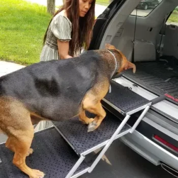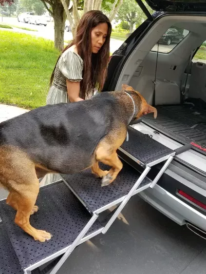 This dog ramp is suitable for all dog breeds weighing up to 250 lbs, be it Corgi or Cane Corso.