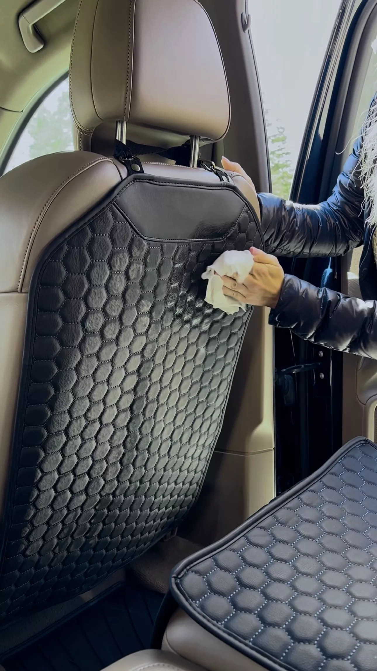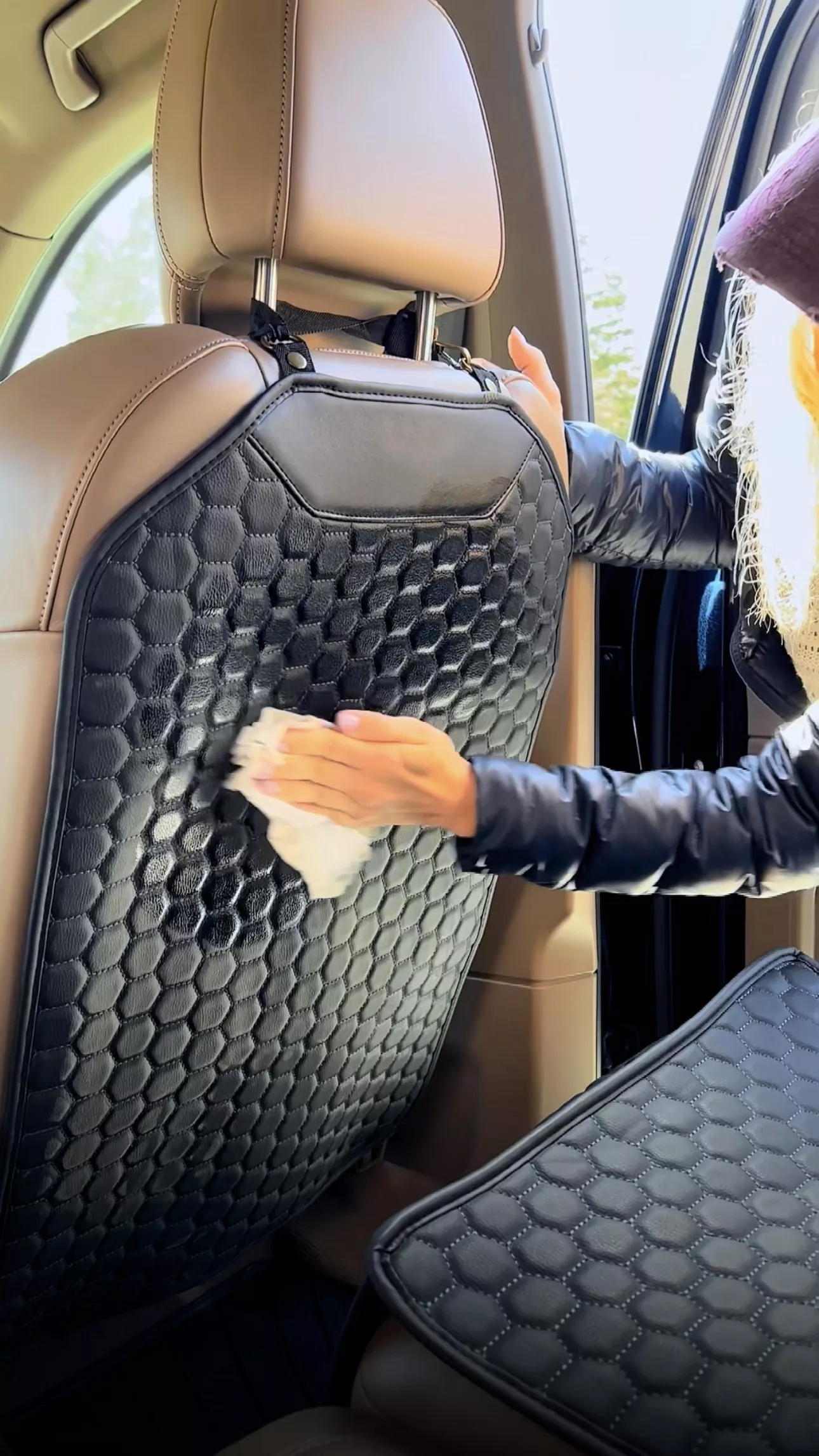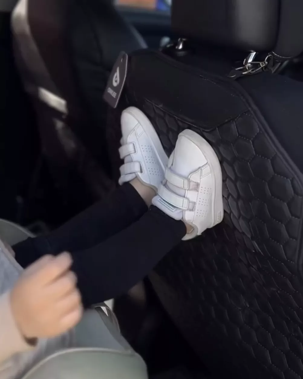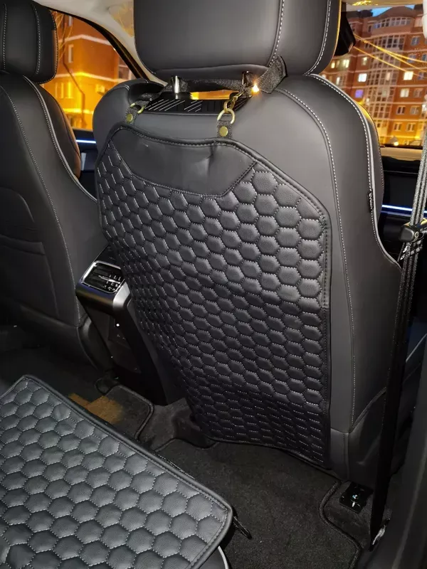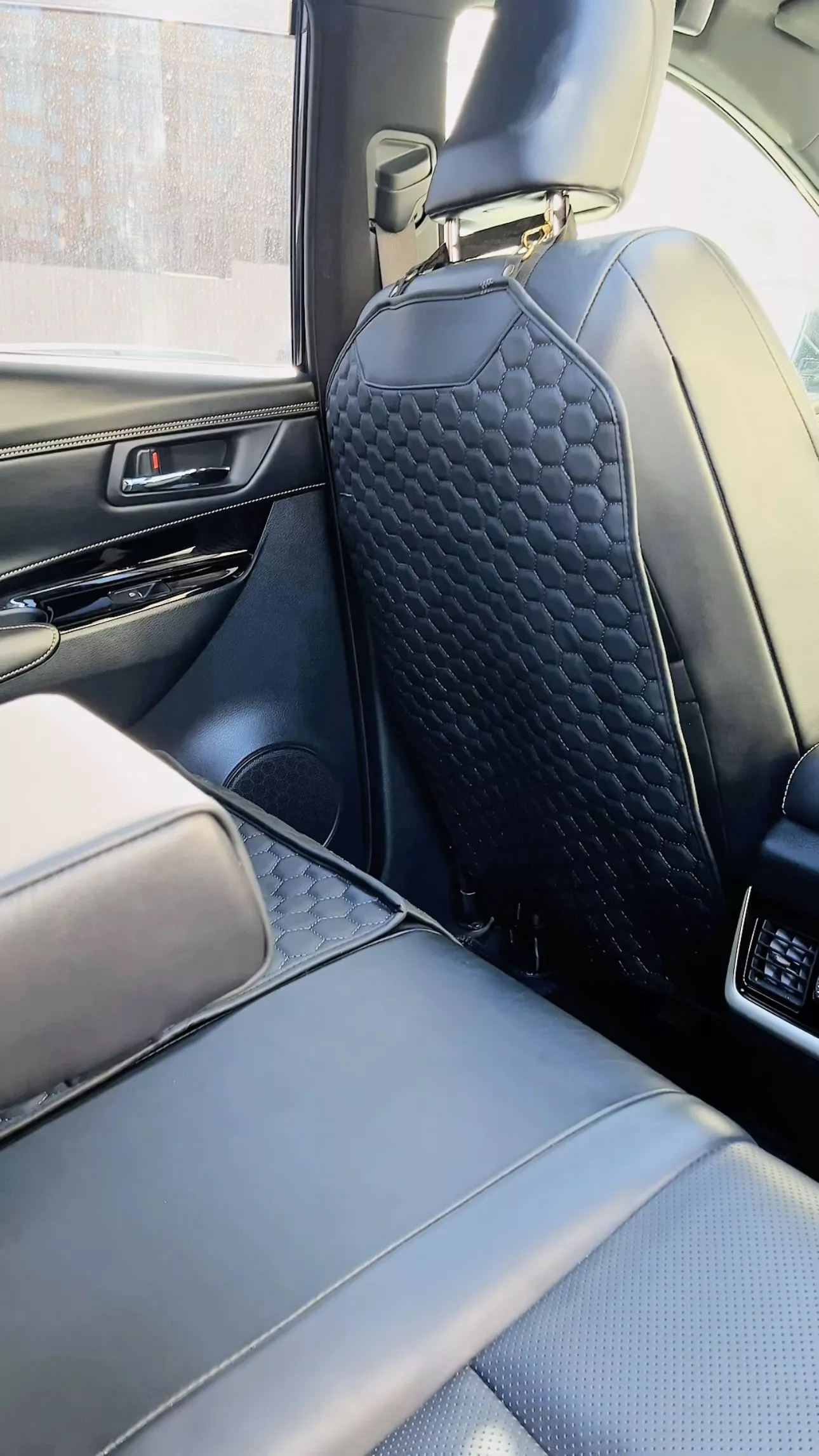 Featuring a sophisticated solid black color with a hexagonal pattern, our seat back protector fits seamlessly into any car interior. It not only guards your seat upholstery against dirt and shoe marks but also adds a touch of style.