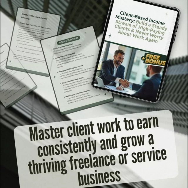 Unlike generic freelance advice or fluff-filled “get rich online” PDFs, Client-Based Income Mastery gives you a practical, tested, and honest system for earning through client-based income—faster and more reliably than passive strategies. Everything inside is built around what actually works in today’s client economy.