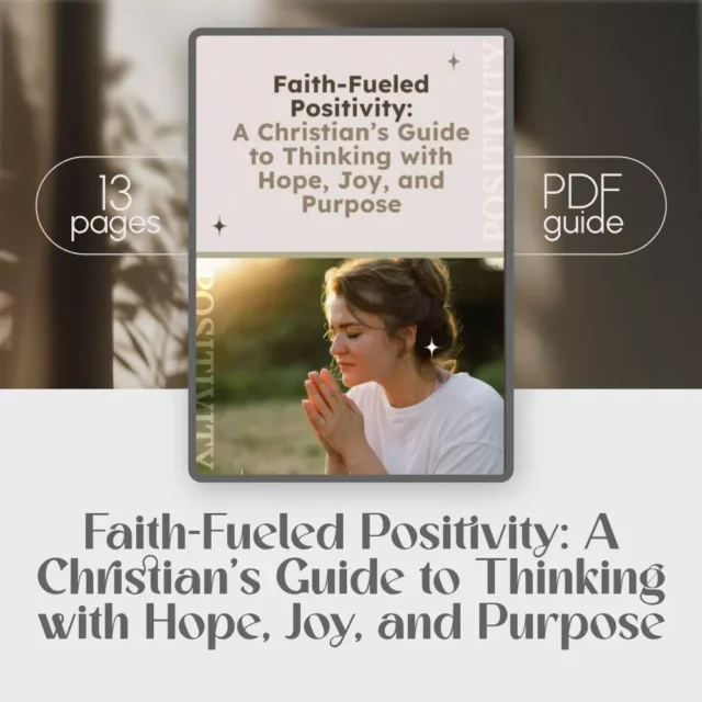 Looking for Christian books on positive thinking that align with your faith and encourage authentic joy? Faith-Fueled Positivity: A Christian’s Guide to Thinking with Hope, Joy, and Purpose is a digital guide designed to help you reshape your thought life through the lens of Scripture. This downloadable guide offers spiritual insight, practical tools, and daily encouragement rooted in biblical truth. Whether you’re battling negativity or just longing to live with more hope and purpose, this resource is your next step toward a renewed mindset.