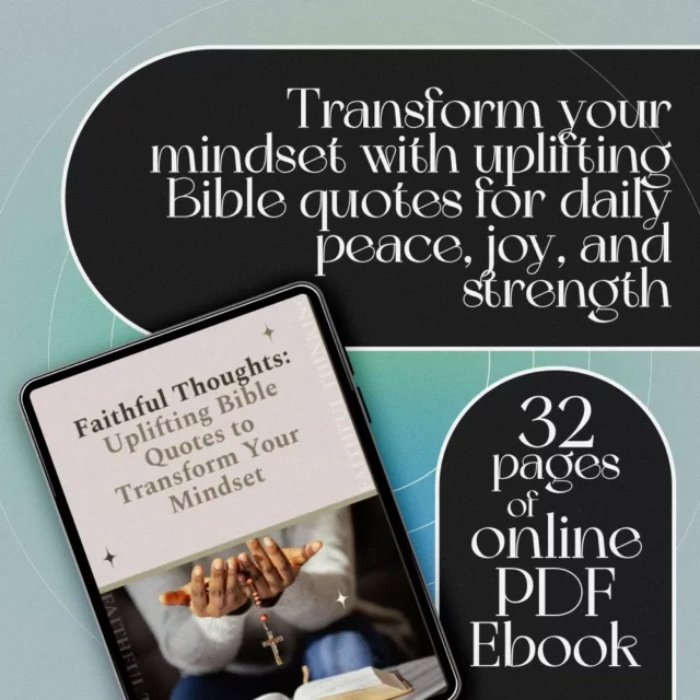 If you’re ready to refresh your spirit and reclaim your joy through God’s promises, this eBook is for you. Download Faithful Thoughts: Uplifting Bible Quotes to Transform Your Mindset now and begin filling your days with peace, purpose, and positivity. Let the Word transform your mind and lead you into a more faithful, hope-filled life.