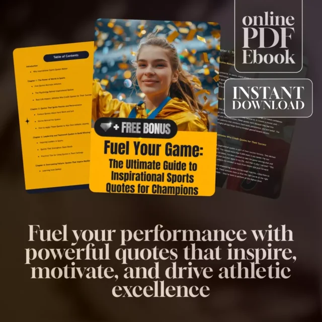 Whether you’re training for your next big win, coaching a team to greatness, or just need a daily boost of motivation, Fuel Your Game: The Ultimate Guide to Inspirational Sports Quotes for Champions is your go-to digital companion. This powerful eBook is packed with hand-picked inspirational sports quotes that have driven elite athletes, champions, and coaches to reach new heights. More than just a collection of words, it’s a tool designed to unlock your full potential and help you channel the mindset of champions.