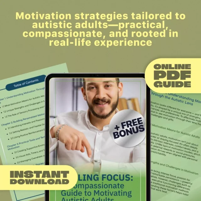 If you’re looking for a digital download that finally shows you how to motivate autistic adults with clarity, compassion, and practicality, this is the guide you’ve been waiting for. Whether you’re a professional, family member, or autistic person ready to build self-motivation, Fueling Focus offers the roadmap. Download now and start making positive, meaningful progress—together.