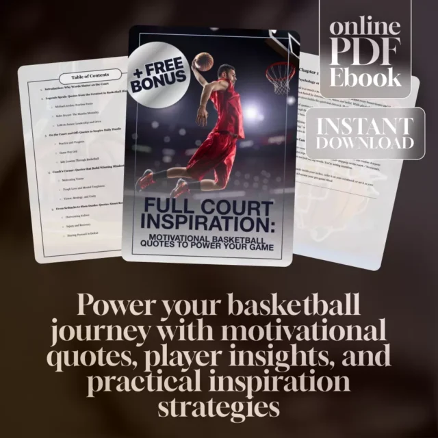 Ready to turn motivation into momentum? Download “Full Court Inspiration: Motivational Basketball Quotes to Power Your Game” today and start building a mental playbook that never quits. This eBook is more than just a collection of basketball motivation quotes—it’s a source of fuel for your drive, focus, and legacy. Add it to your cart now and let every page push you closer to greatness.