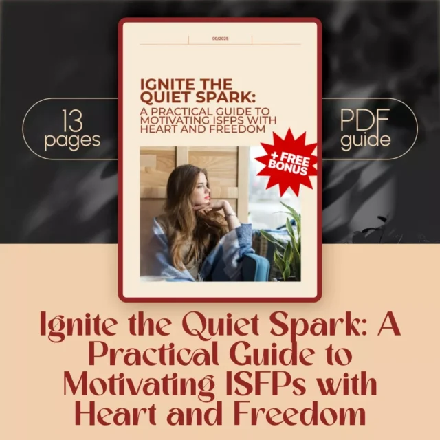Don’t wait to transform how you inspire the quiet, creative souls in your life. Download “Ignite the Quiet Spark: A Practical Guide to Motivating ISFPs with Heart and Freedom” today and start discovering how to motivate ISFP with compassion, freedom, and results.