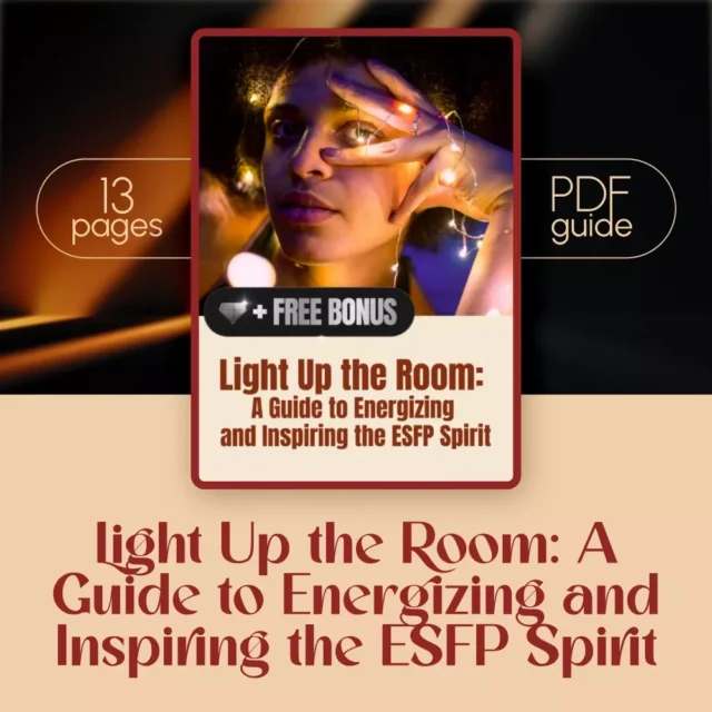 Download Light Up the Room: A Guide to Energizing and Inspiring the ESFP Spirit now and learn how to motivate ESFP personalities with confidence and clarity. Turn your understanding into action and help the ESFPs in your life shine their brightest.
