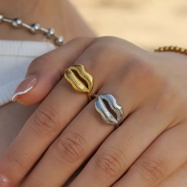 Introducing our latest fashion statement – a Luxurious 18K Gold Plated Stainless Steel Lip Ring, meticulously crafted for the modern woman. With its distinctive lip design, this ring is more than just a piece of jewelry; it’s a symbol of trendy sophistication and style. Designed to captivate and charm, this ring is the perfect gift for yourself or a loved one, ensuring you stand out at any occasion.