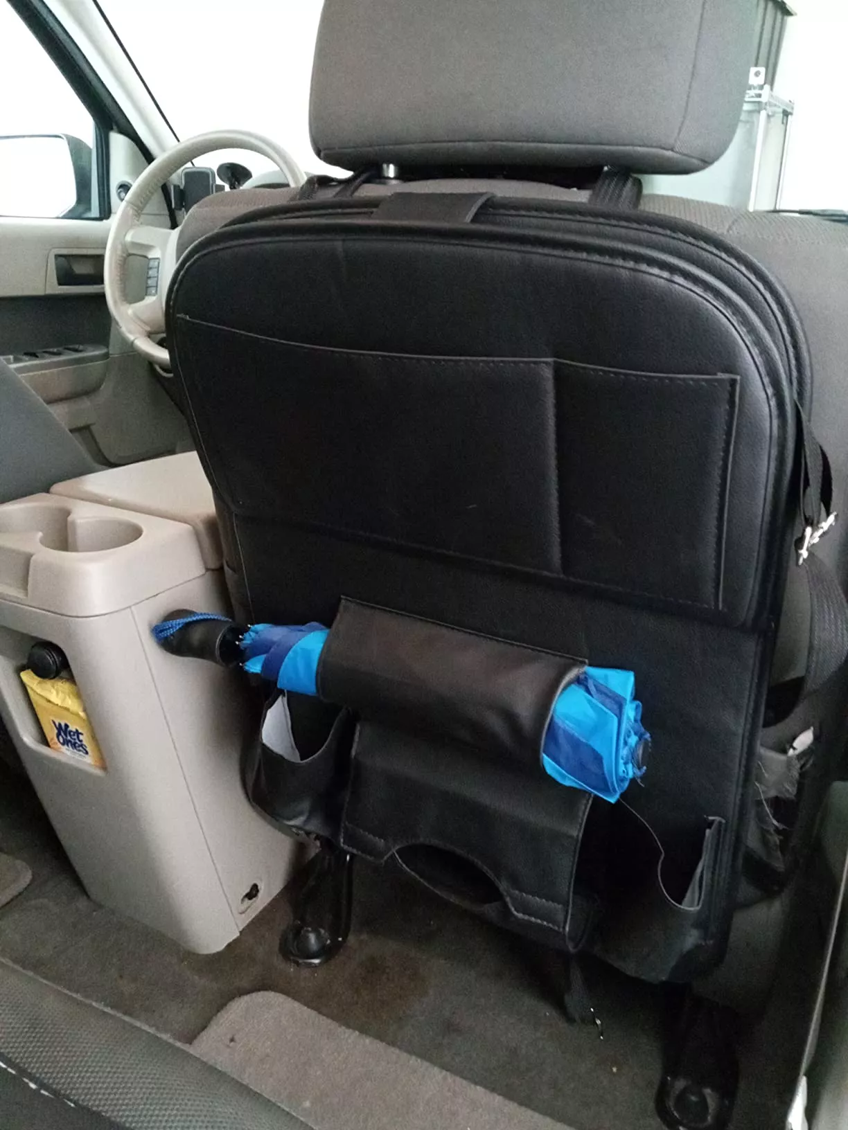 Imagine turning your car’s back seat into an oasis of organization and convenience. With our Luxury PU Leather Car Seat Back Organizer, you not only add sophistication to your car’s interior but also ensure every item has its place, from your child’s favorite toy to your essential road trip snacks.