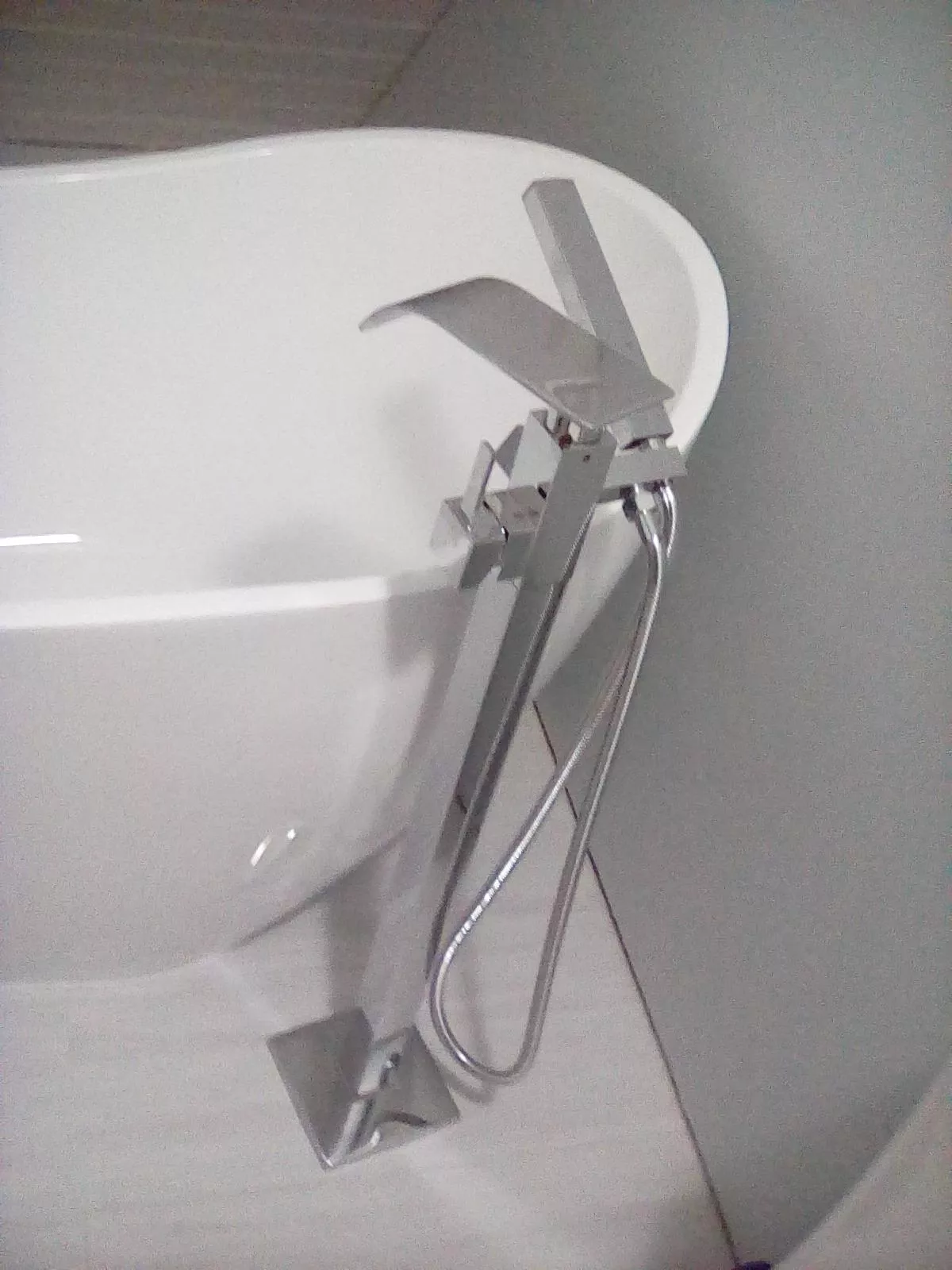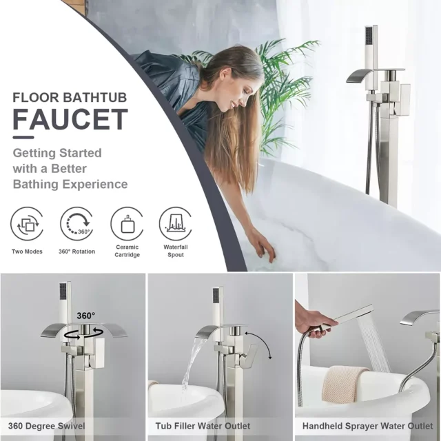This floor-standing faucet is not only a functional addition but also an artistic statement. Ideal for modern, minimalist, or any contemporary bathroom decor, it stands out as a piece of art. Whether you are renovating or building a new bathroom, this faucet adds a touch of elegance and sophistication.