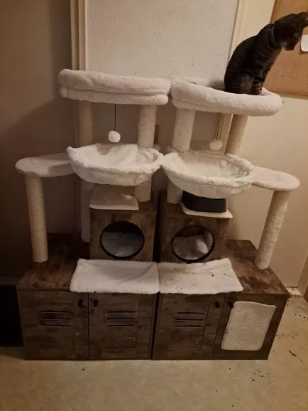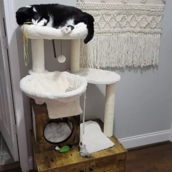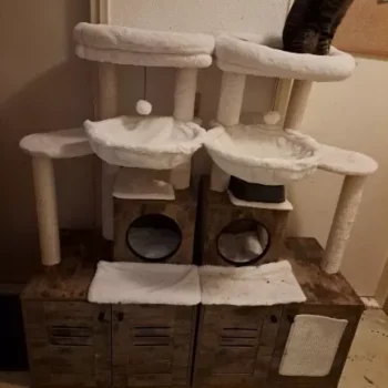 Our cat tower stands out for its multifunctionality and premium materials. The foldable litter box, included for free, makes this an unbeatable value. It’s not just a piece of furniture; it’s a comprehensive solution for your cat’s needs. Easy to assemble and designed to accommodate 2-3 cats simultaneously, it’s suitable for both single and multi-cat families. The use of healthy, environmentally friendly materials ensures your cat’s wellbeing, making it the perfect choice for conscientious pet owners.