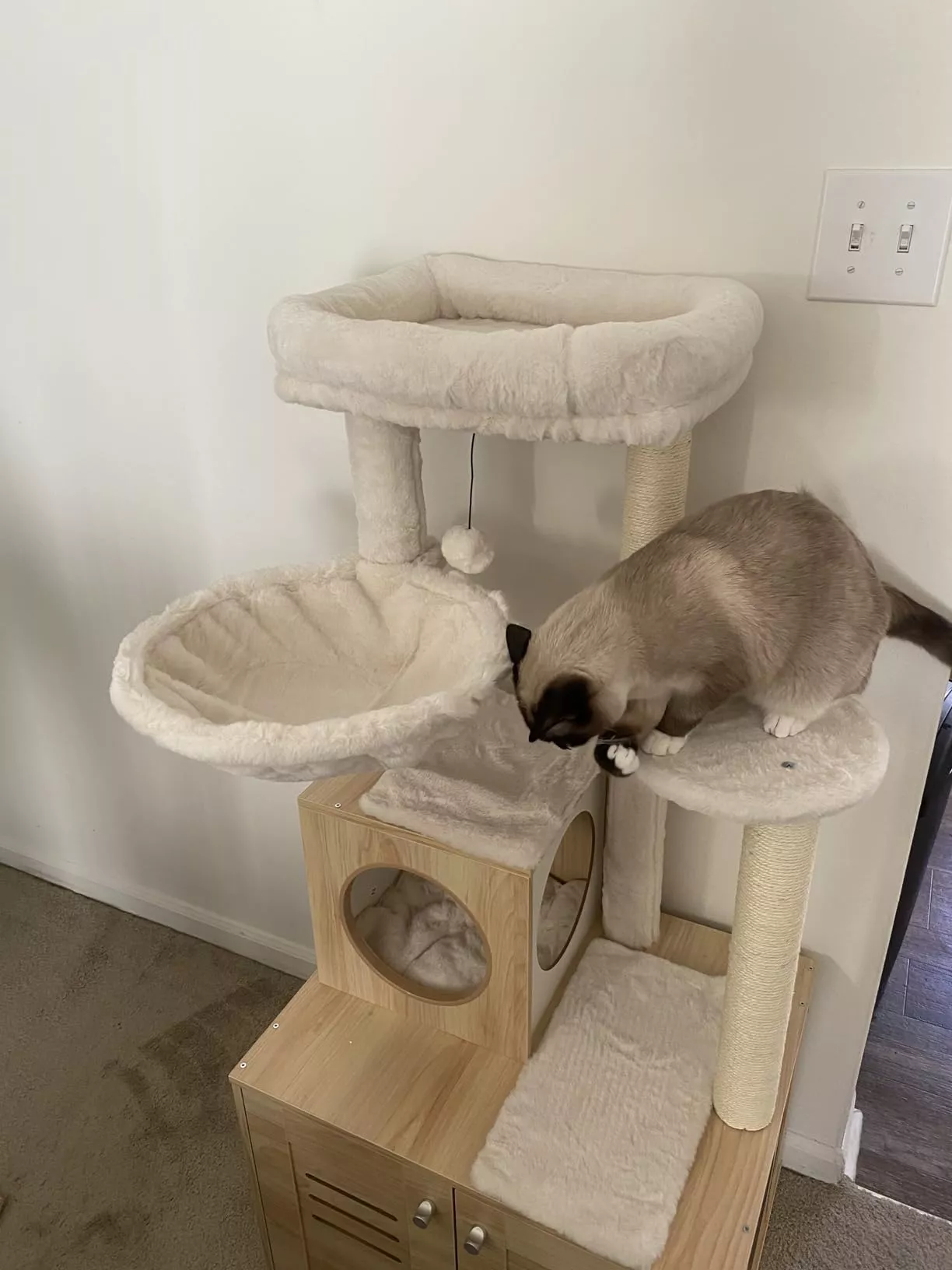With its blend of style, functionality, and comfort, our Luxury Wood Cat Tower is the perfect addition to any home. Give your cats the gift of their own special retreat where they can play, scratch, and rest to their hearts’ content. Don’t wait to transform your pet’s life for the better. Order now and witness the joy and satisfaction this cat tower brings to your feline friends.