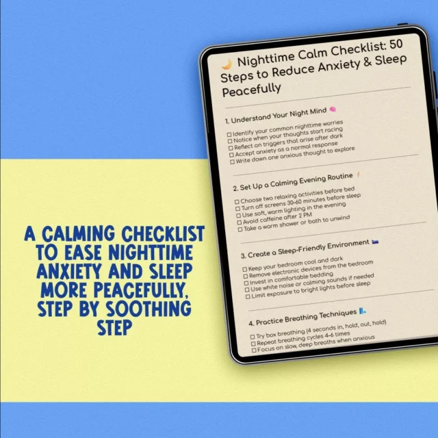 Take the guesswork out of your evening and bring more calm into your nights. Download the Nighttime Calm Checklist: 50 Steps to Reduce Anxiety & Sleep Peacefully now and start your journey toward a more peaceful, anxiety-free bedtime. You deserve restful nights and brighter mornings—start today.