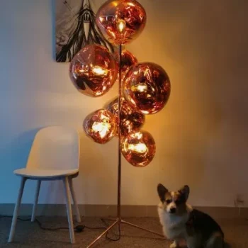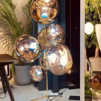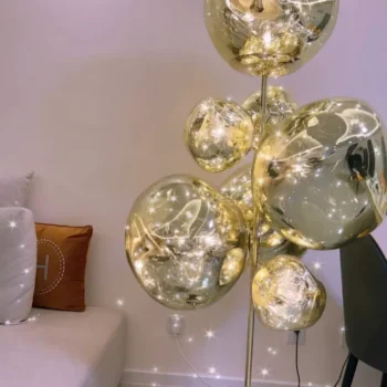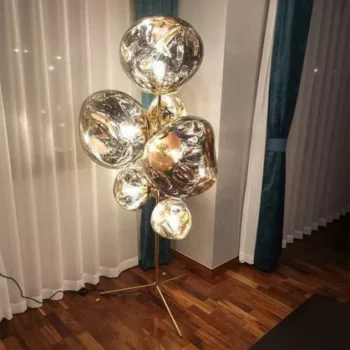 Our Nordic Lava LED Floor Lamp boasts a range of features that set it apart. Crafted from high-quality hardware and acrylic, it offers durability and a sleek look. The lamp’s mirror-like texture, achieved through innovative electroplating, adds a luxurious feel to your space. Standing at an impressive height of 175cm and with a diameter of 90cm, it provides optimal illumination for an area of 5-10 square meters.