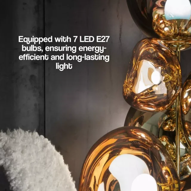 • Equipped with 7 LED E27 bulbs, ensuring energy-efficient and long-lasting light.