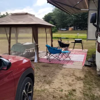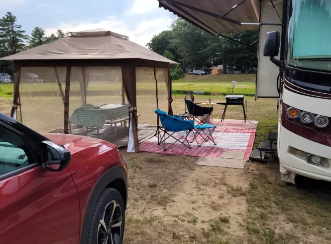 • Durable Mesh Walls: Comes with mesh walls that ensure privacy and protection from insects, adding comfort to your outdoor experience.