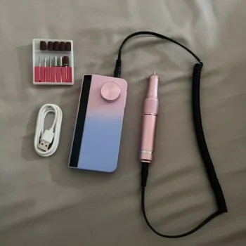 i recently purchased this rechargeable nail drill manicure machine and it has exceeded my expectations. the drill is powerful yet gentle on my nails, making it perfect for both beginners and professionals. the rechargeable feature is incredibly convenient, eliminating the hassle of cords and providing great portability. the battery life is impressive – it lasts through multiple manicure sessions before needing a recharge. the drill comes with a variety of attachments that are all high-quality and versatile, making it easy to shape, smooth, and buff my nails. the multiple speed settings allow for precise control, ensuring a professional-looking finish every time. the drill is also very quiet and doesn’t heat up, which makes it comfortable to use for extended periods. i’ve saved so much time and money doing my nails at home with this machine. it’s a fantastic investment for anyone who loves having beautifully manicured nails. highly recommend this product.