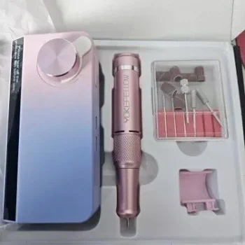 The aesthetic appeal of this pink and light purple nail drill is matched by its functionality, including convenient USB-powered accessories. It's an affordable, simple solution for at-home nail care.