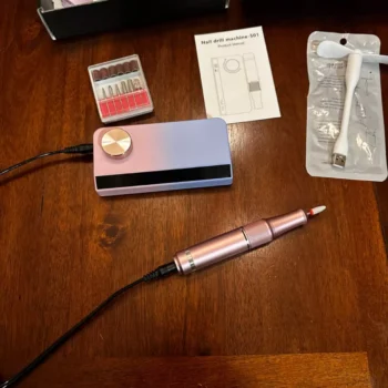 got this rechargeable nail drill machine and it’s wonderful. it’s easy to use, with intuitive controls and a variety of speed settings. the rechargeable battery is a major plus – it lasts a long time and makes the drill very portable. the attachments are versatile and perfect for all my manicure needs. the drill is quiet and doesn’t get hot, even with extended use. my nails look professionally done every time i use it. it’s a great investment for anyone who loves doing their nails at home. i’m very satisfied with this purchase and highly recommend it.