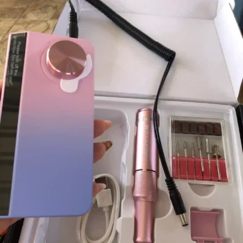 This rechargeable nail drill machine has been a game-changer for my at-home manicures. the drill is lightweight and easy to handle, with intuitive controls and multiple speed settings. the rechargeable battery is a major plus – it lasts a long time and makes the drill very portable and convenient to use anywhere. the attachments are excellent, covering all my nail care needs from shaping to buffing. the drill is powerful enough to handle tough nails yet gentle enough to avoid damaging my natural nails. it’s also very quiet and doesn’t overheat, making it comfortable to use for extended periods. i’ve noticed a significant improvement in the quality of my manicures since i started using this machine. it saves me a lot of time and money compared to regular salon visits. overall, i’m extremely happy with this purchase and highly recommend it to anyone looking for a high-quality nail drill.