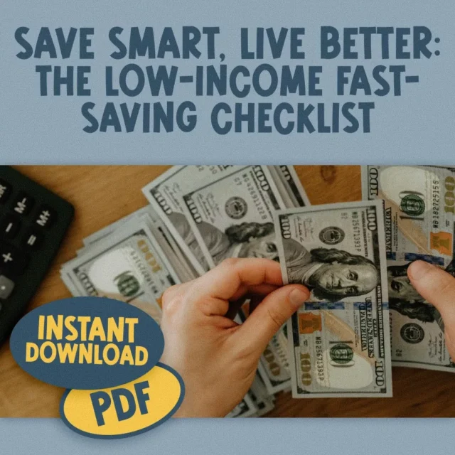Save Smart, Live Better: The Low-Income Fast-Saving Checklist is a digital PDF you can access instantly after purchase. Print it, keep it on your phone, or use it weekly as your personal savings guide. If you’re ready to save money fast on low income, this is your next best step. Small changes add up—let’s start now.