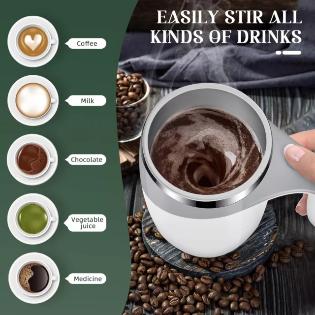 Crafted from 304 kitchen-grade stainless steel, this durable and safe stirring mug ensures your beverages stay fresh and free from harmful chemicals. The USB rechargeable feature eliminates the need for disposable batteries, making it an environmentally friendly choice for those who love convenience.