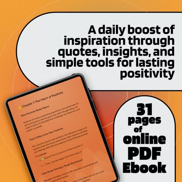 With a thoughtful structure and gentle guidance, this eBook is perfect for anyone ready to embrace a more positive, optimistic lifestyle—without falling into the trap of toxic positivity. Designed to be both practical and heartfelt, it’s a unique resource to carry with you on your phone, tablet, or desktop.
