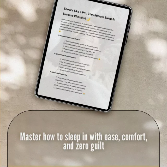 Ready to feel recharged and take back your mornings? Download Snooze Like a Pro: The Ultimate Sleep-In Success Checklist today and make your next sleep-in the most refreshing part of your week. Your cozy, calm, and well-rested self is waiting.