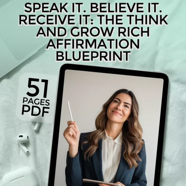 Download Speak It. Believe It. Receive It: The Think and Grow Rich Affirmation Blueprint now and start turning daily words into lasting wealth. This digital download is instant, yours forever, and ready to unlock the abundance you deserve.