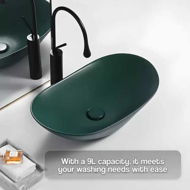 Our ceramic wash basin not only serves its practical purpose but also adds a statement piece to your bathroom decor. The sleek black basin with a modern oval shape exudes elegance and style, making it a focal point of your space.