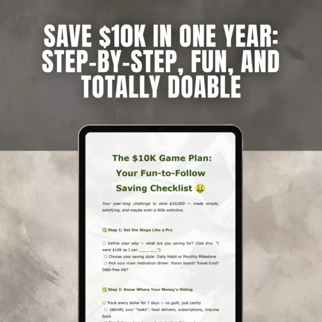 Download The $10K Game Plan: Your Fun-to-Follow Saving Checklist now and take your first step toward financial freedom. Whether you print it or keep it digital, this checklist will keep you inspired, on track, and saving smarter. Your $10K goal is closer than you think — let’s go get it!