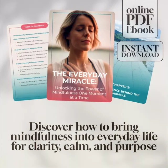Looking for a calm, clear way to reconnect with yourself in the middle of life’s chaos? The Everyday Miracle: Unlocking the Power of Mindfulness One Moment at a Time is your beautifully designed digital companion to discover the miracle of mindfulness and bring it effortlessly into your daily life. Whether you’re brand new to mindfulness or looking to deepen your practice, this eBook is filled with inspiration, science-backed insight, and practical tools you can use right away—no yoga mat or retreat required.