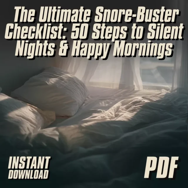 Don’t waste another night losing sleep or waking up groggy. Download The Ultimate Snore-Buster Checklist: 50 Steps to Silent Nights & Happy Mornings now and take control of your rest. With this printable guide at your side, you’ll know exactly how to avoid snoring at night—and how to make better mornings a reality. Click to download and start your journey toward quiet, peaceful nights!
