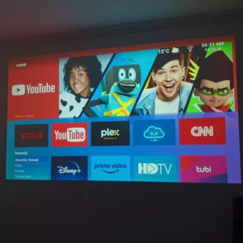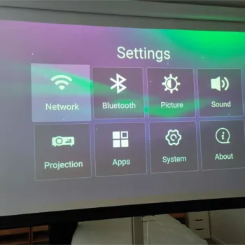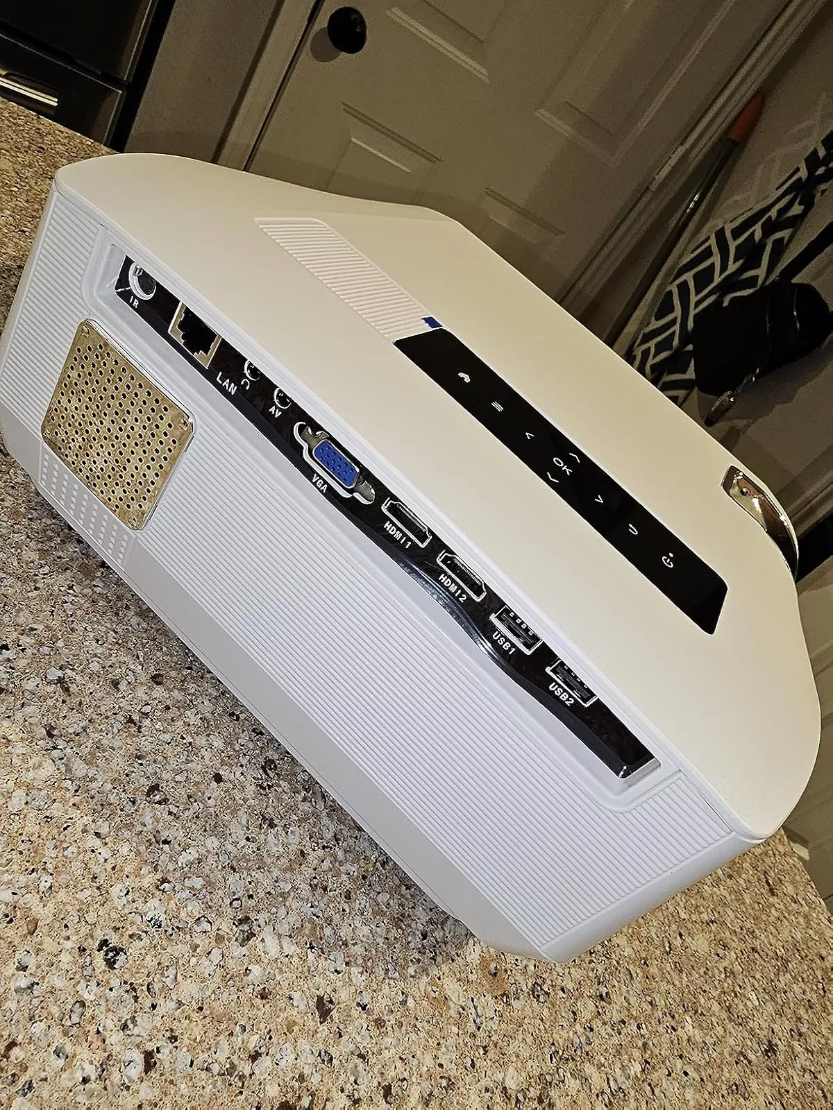 This projector stands out with its blend of advanced technology and user-friendly features. The 1450 ANSI lumens brightness ensures clear viewing even in daylight, making it ideal for any time of day. The projector’s 1080p native resolution and support for 4K content deliver a superior viewing experience, whether you’re watching movies, playing games, or giving presentations. The built-in WiFi 6 technology provides fast and stable internet connectivity, perfect for streaming and online gaming. With the Android 9.0 TV Box, you have easy access to a wide range of apps and streaming services. The large projection size, up to 300 inches, transforms any room into a home theater, offering an immersive viewing experience far beyond a traditional TV. Additionally, the HIFI 10W speakers with Dolby Audio support create a rich, powerful sound environment, enhancing the overall experience. The advanced keystone correction makes it easy to set up the projector at any angle, ensuring a perfect picture every time. The projector’s rich interface options, including HDMI and USB, allow for easy connection to various devices, enhancing its versatility.