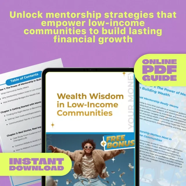 If you’re passionate about economic empowerment, social impact, and meaningful connection, Wealth Wisdom in Low-Income Communities is made for you. Unlike other mentorship eBooks, this guide directly addresses the challenges and opportunities of building wealth through mentorship in low-income communities. Whether you’re just starting or looking to deepen your impact, this resource will move you from intention to action.