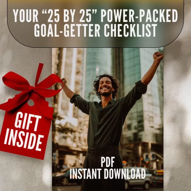 Don’t let your best years slip by without a plan. Download “Your ‘25 by 25’ Power-Packed Goal-Getter Checklist” today and start shaping the future you deserve—one intentional goal at a time.