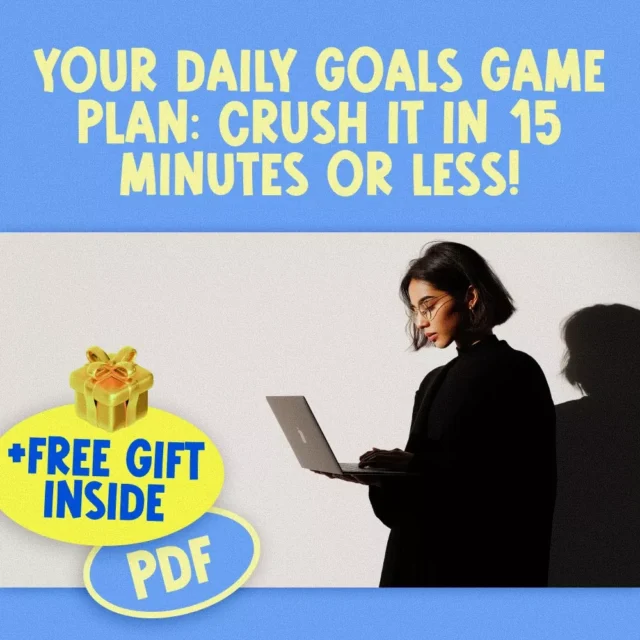 Download Your Daily Goals Game Plan today and start making your time work for you. This is your shortcut to consistent wins, boosted productivity, and less stress — all in 15 minutes or less. Hit that download button and take back your day!